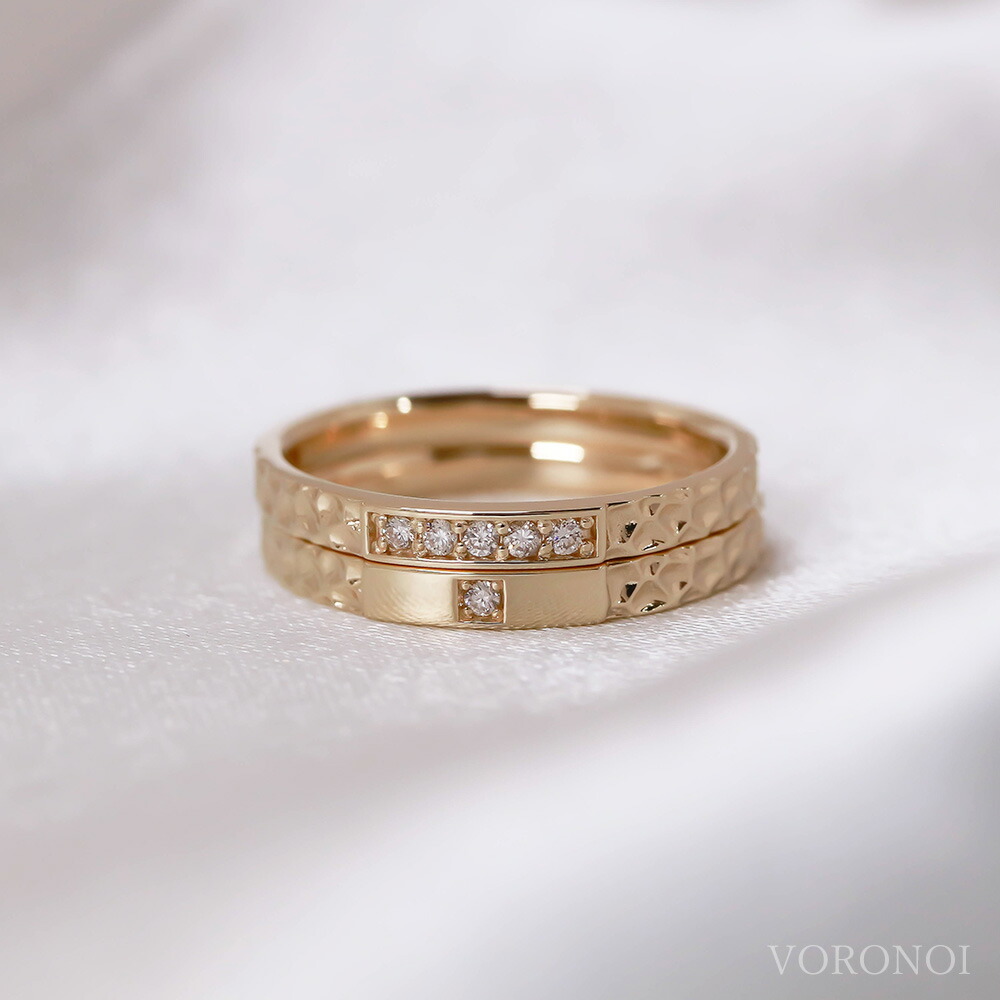 K10 マリッジリング 10金 Voronoi Gold オールシーズン カップルリング ギフト ゴールド シンプル ダイヤモンド プレゼント ペアリング ボロノイ 個性的 光 冬 夏 女性 彼女 春 男性 秋 誕生日 金 高級 アウトレット 送料無料 カップルリング